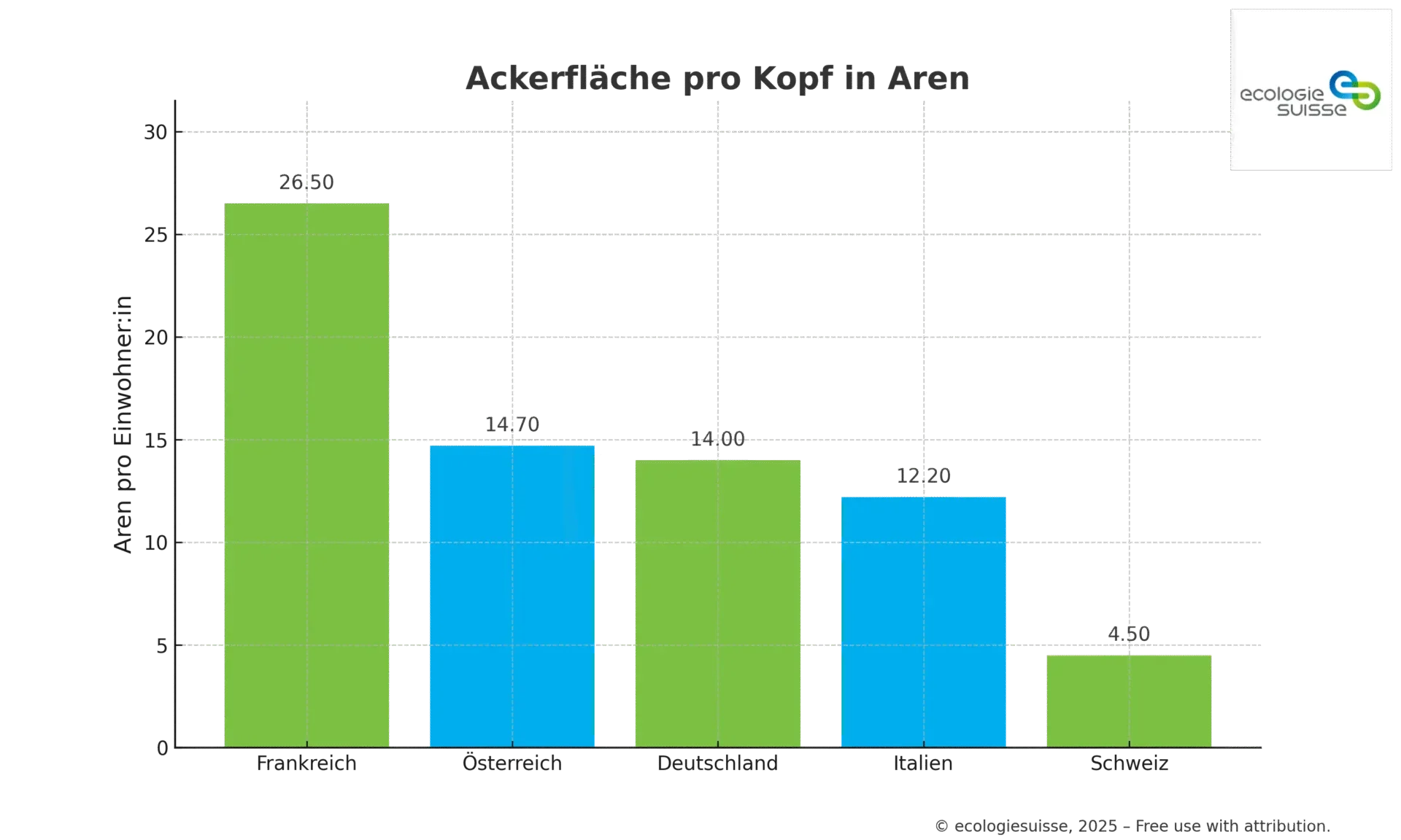 Zum Vergleich: Frankreich hat pro Kopf fast sechsmal so viel Ackerfläche zur Verfügung, Deutschland immerhin noch rund das Dreifache. Diese Diskrepanz ist nicht allein Folge der Alpengeografie, sie ist auch Resultat jahrzehntelanger Prioritätensetzung, in der Verdichtung und Siedlungsausbau oft höher gewichtet wurden als Ernährungssicherheit und Bodenschutz.